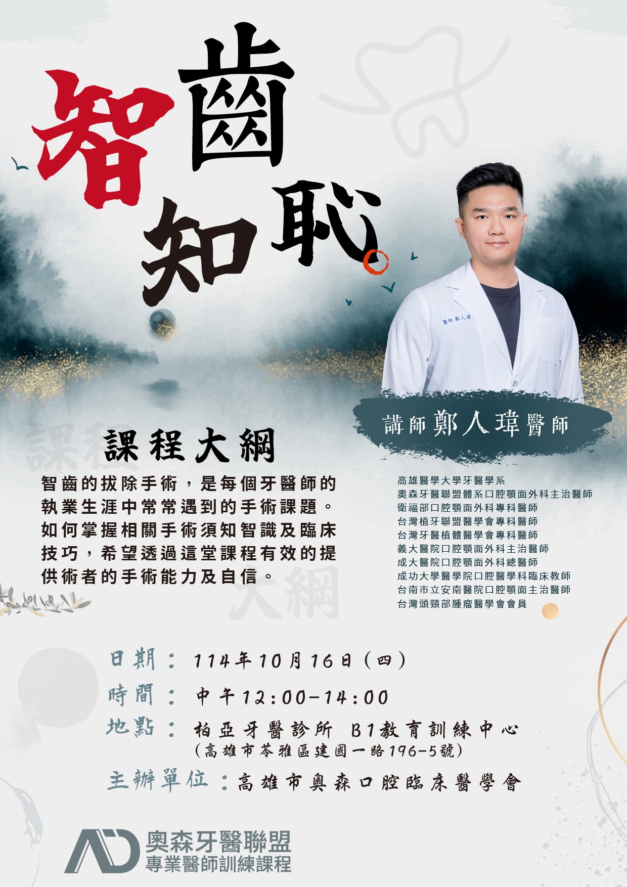 奧森牙醫聯盟X專業醫師訓練課程【智齒·知恥】